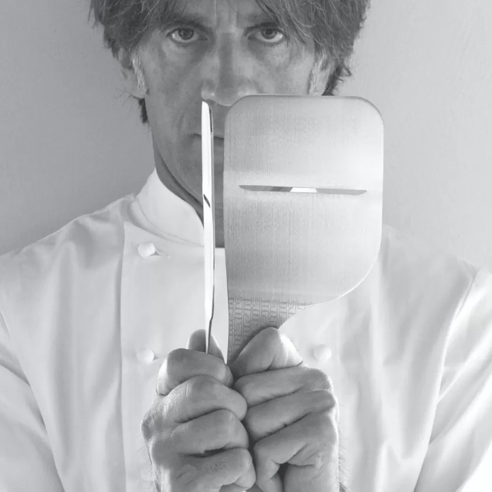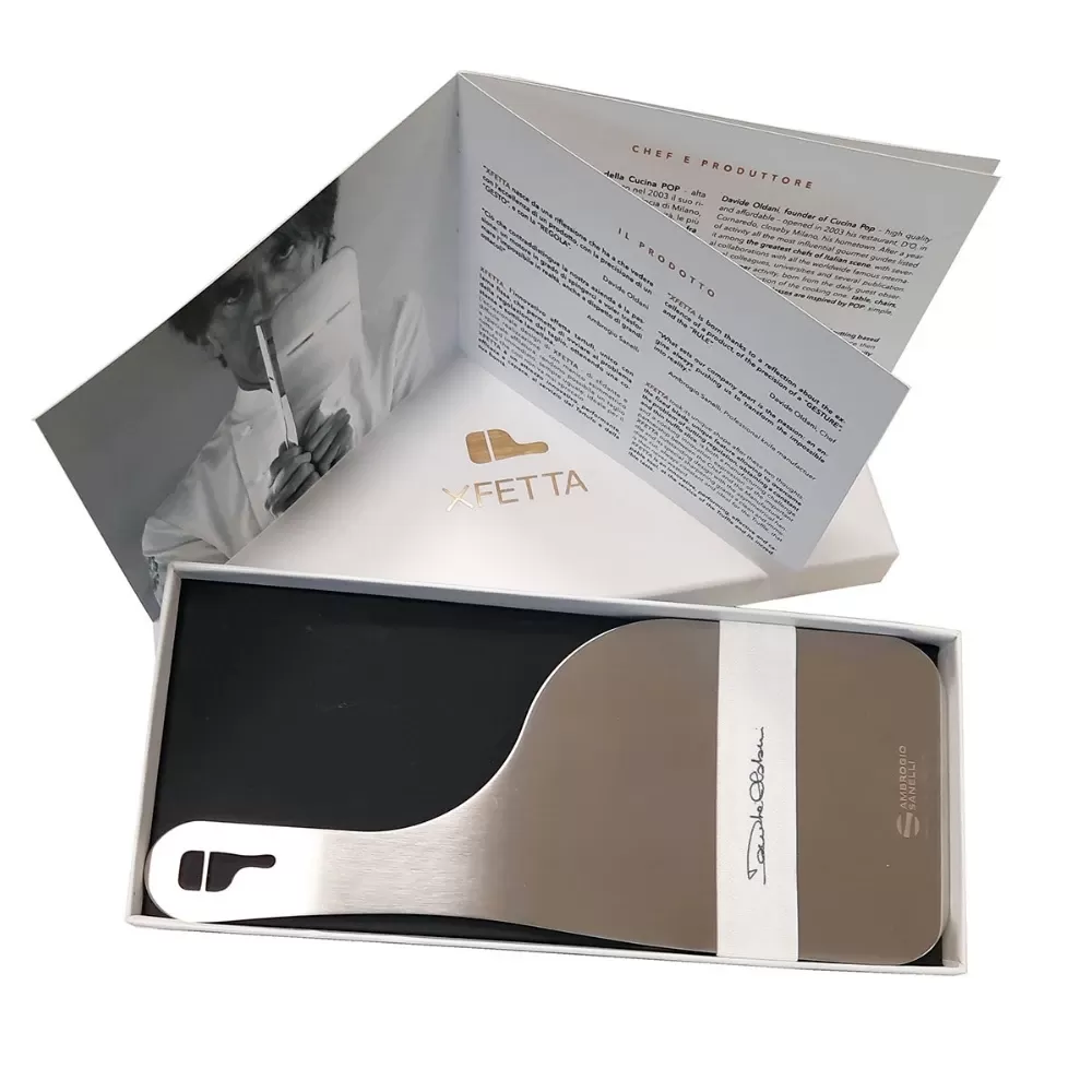 L'eccezionale design di XFETTA - di sfidante e difficile realizzazione - con manico asimmetrico e speciale, rendono possibile un taglio netto e immediato, sempre uguale, ideale per il Tartufo che così non va mai sprecato.