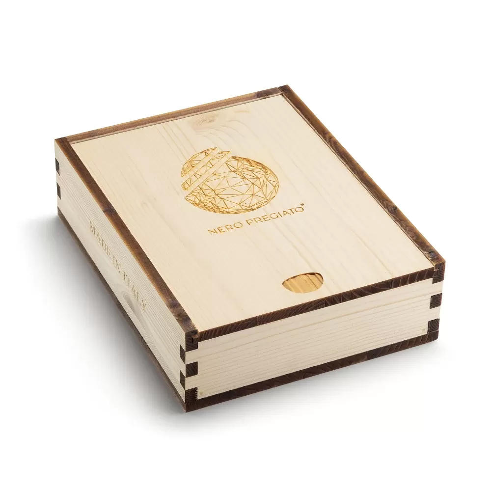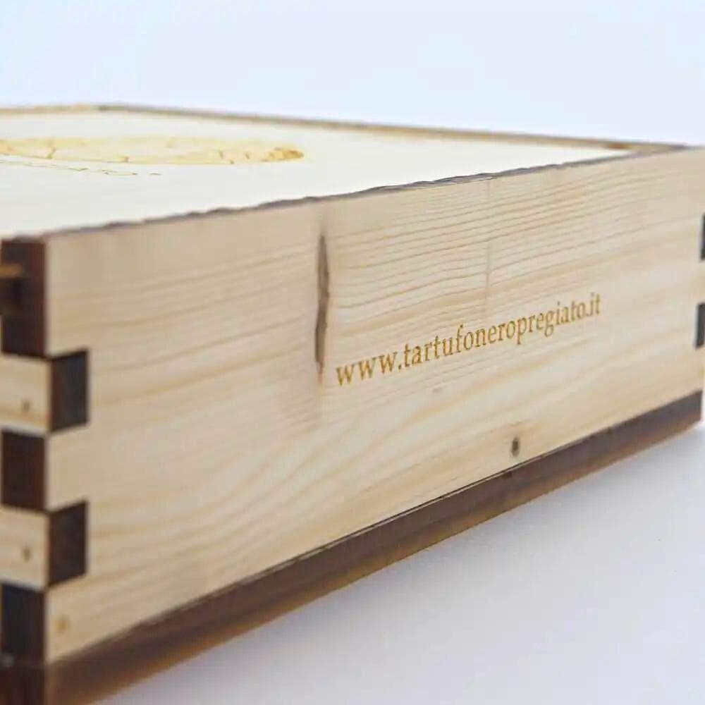 Nel cofanetto sono inseriti i seguenti accessori: gobbetto da tartufo, spazzolina in legno di Teak con tampico, affetta tartufi inox lama liscia.