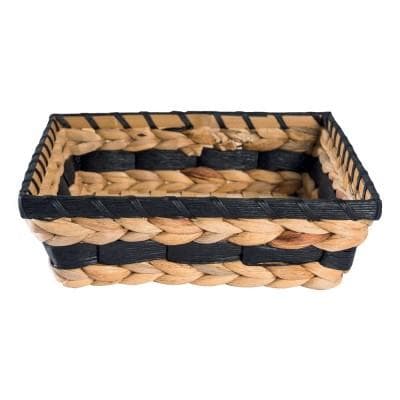 Cesto in vimini beige e nero rettangolare intrecciato Dim.25x25x7.5 cm